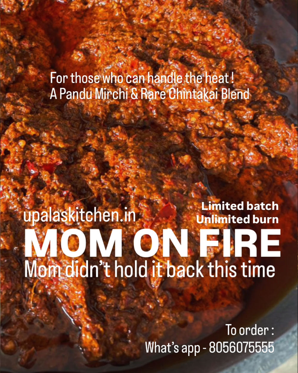 A limited-batch Andhra creation that brings together the ripest Pandu Mirchi (red chillies) and the rare Chintakai (raw tamarind) for a tongue-tingling, unforgettable flavor.
